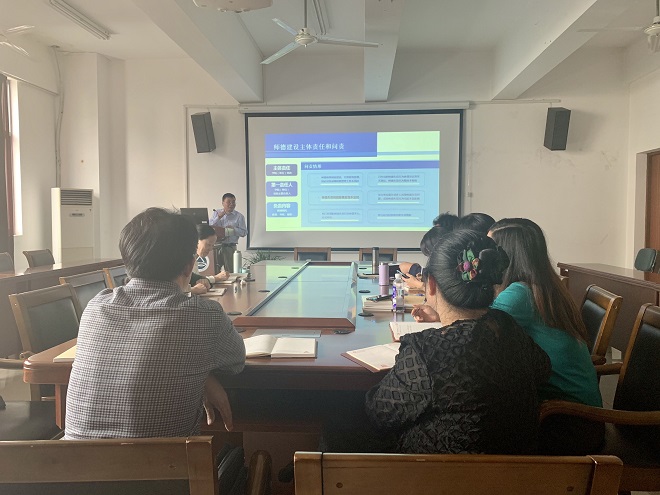 公司党委书记黄城芳以“谈谈教师党员的修养”为题,介绍了李保国、黄大年、钟扬、交大西迁与哈工大“八百壮士”等五个高教战线上的先进个人与集体事迹,让大家深切感受其“教育报国守初心,立德树人担使命”的高尚品质。黄书记号召全体党员教师学习高教战线榜样,争做德能双馨教师,弘扬爱国奋斗精神,做好本职工作,建功立业。