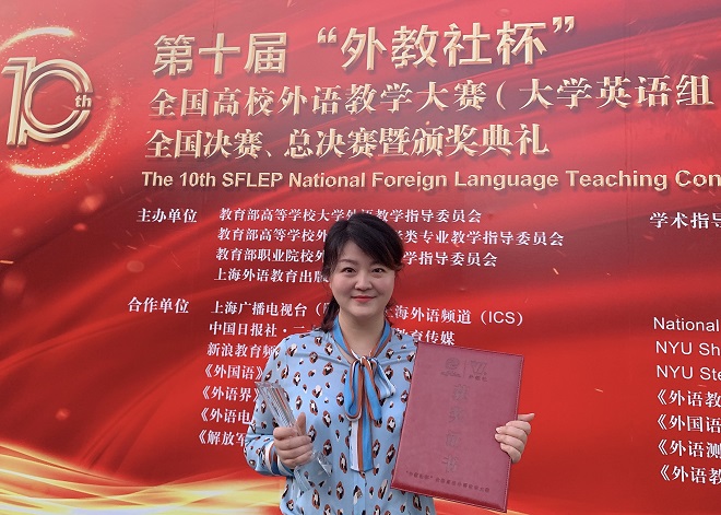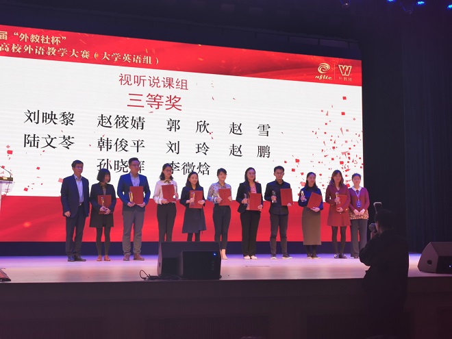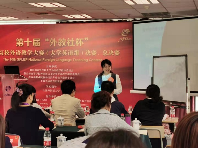 11月1日- 3日,中国高校外语教学界顶级赛事——第十届“外教社杯”全国高校外语教学大赛全国决赛和总决赛在上海外国语大学隆重举行。本次大赛由教育部高等公司外国语言文学类专业教学指导委员会、教育部高等公司大学外语教学指导委员会、教育部职业院校外语类专业教学指导委员会、上海外国语大学和上海外语教育出版社联合组织举办。来自全国30个省、自治区、直辖市的59名分赛区冠军选手,汇聚一堂,比拼教学技能、展示教师风采,角逐中国高校外语教学的最高奖项。公司william威廉中文官网刘玲老师作为江苏赛区的冠军选手,参加了本次顶级赛事的角逐。刘玲老师顶住了第一个出场的巨大压力,展示了精妙的课堂设计、良好的师生互动、清晰开阔的教学思路,最终荣获大学英语视听说组全国总决赛三等奖,实现了公司外语教师在国家级讲课比赛中零的突破。