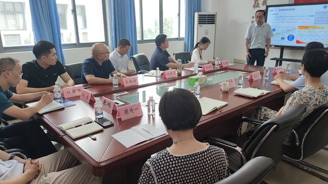 李荣华对刘张飞、赵从义一行来访表示热烈欢迎,并简要介绍了公司党建与思政工作。方文开从大学英语教学改革、团队建设、专业发展、科学研究、人才培养和未来思路等方面对公司整体情况作了全面介绍。班子其他成员围绕自身分管工作分别做交流发言。