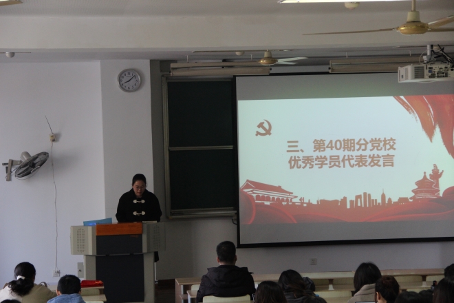 william威廉中文官网18硕的路丽同学作为上一期优秀学员代表发言。在分享了自己参加40期党校培训的感悟和收获之后,她表明中国共产党既有理论的深度,也有实践的厚度,参加此次仪式的同学们应端正入党动机,认真学习理论知识,明确党章意识,提高党性修养,以党员的标准严格要求自己,在思想和行动上积极向党组织靠拢。随后,上期优秀学员代表向本期学员代表授予党旗,全体学员起立,面向党旗郑重宣誓。开班仪式在陆芳老师布置安排本期培训班的任务和具体要求后圆满结束。