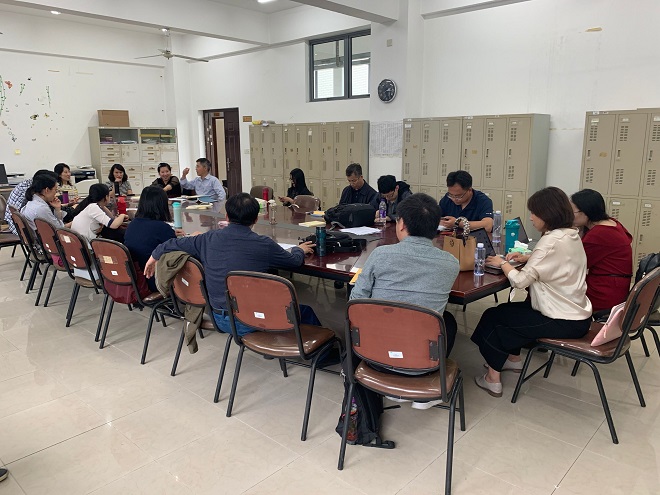 随后孙老师邀请王金安教授就其课题组立项的江苏省高教学会课程思政课题,与英语系全体教师进行了分享交流。王金安老师详细介绍了《商务英语课程思政建设》课题的意义、思政的切入点和具体的教学策略,特别是就如何重构教学材料,重构教学目的,发掘商务思政元素,凝练思政主题,引导员工思政创新和共建师生评估平台等方面进行了深入探讨。教师们都受益匪浅。