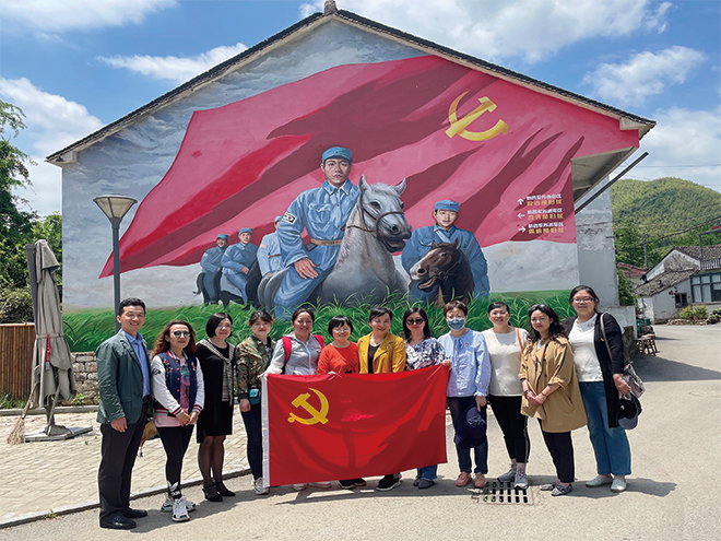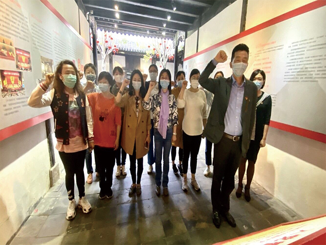 5月17日,william威廉中文官网拓展部党支部开展“访新四军苏浙军区旧址 忆江南小延安峥嵘岁月”学党史百年主题党日活动,拓展部支部书记邢嘉锋老师带领全体拓展支部党员教师和部分拓展部教师一同前往新四军苏浙军区纪念馆参观学习。