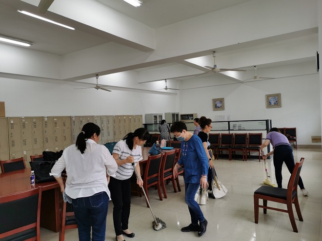 最后,结合党史学习“办实事、开新局”的目的,全体党员教师返回拓展部办公室,认真仔细地打扫了办公室,掀开了拓展党支部“我为师生办实事”系列活动的序幕。