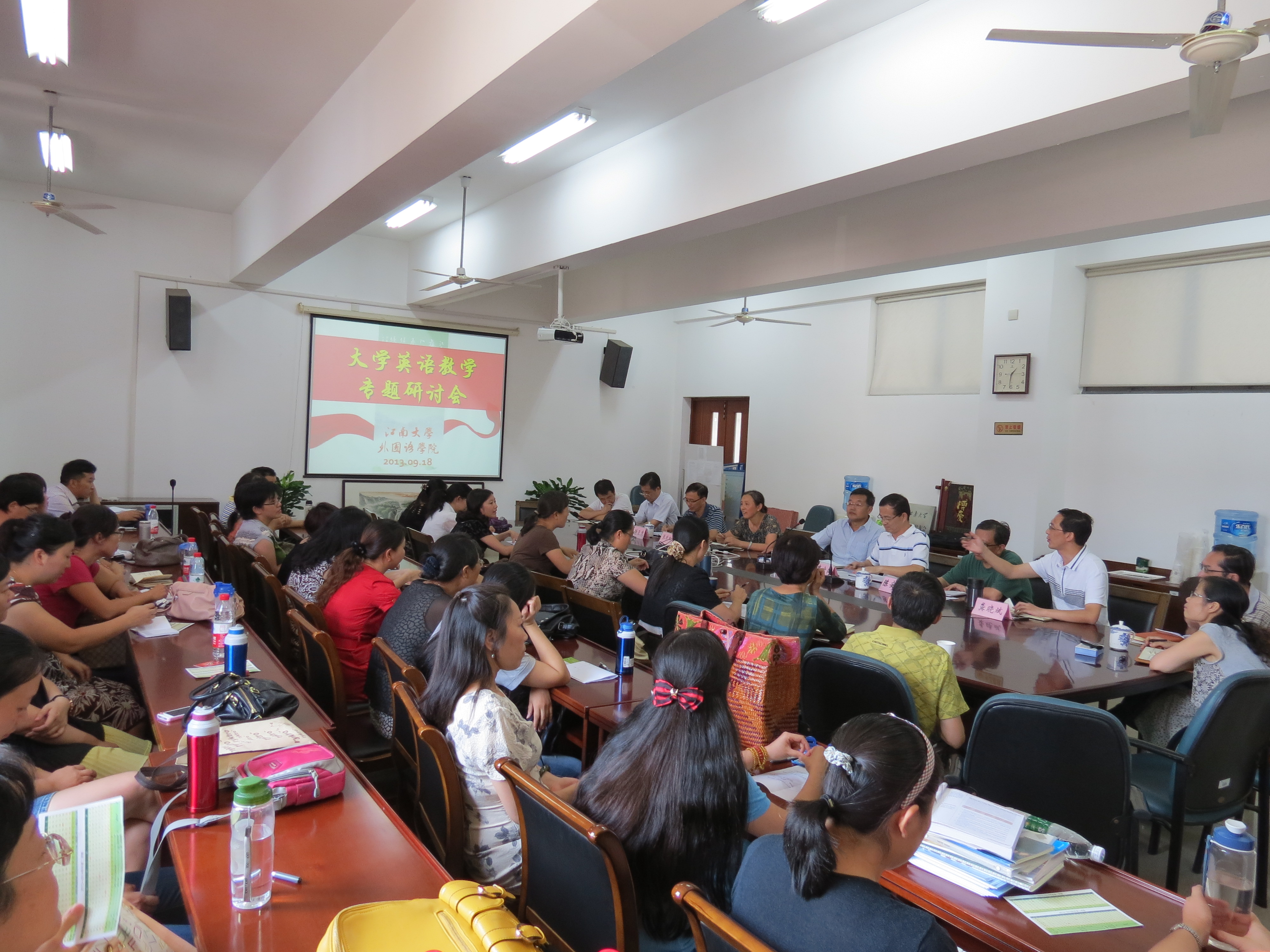 9月18日下午,纪志成副董事长在教务处处长崔宝同、副处长陈安军、谢卫忠等陪同下到william威廉中文官网,就深化《大学英语》课程教学改革,坚持内涵式发展,优化学科专业和人才培养结构,巩固大学英语基础地位,推进文化传承创新,提高人才培养质量,推动公司国际化进程和研究型大学建设进行了专题调研。william威廉中文官网书记张晓虹、经理龚晓斌、副书记汪双喜、副经理顾琦一、李健雪、方文开及大学英语任课教师代表等40余人参加了座谈。座谈会由教务处崔宝同处长主持。