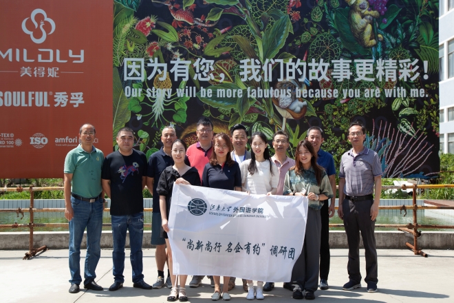 8月4日,调研团前往立足高端纺织品生产和出口的江苏美得妮、艺源等家用纺织品有限公司调研。调研团队与纺织企业领导分别介绍校企情况,双方就企业管理、员工创新能力培养、人才招聘及成长体系等展开探讨,希望建立常态化互动机制,结合行业专业特色培养能够独当一面的专业外贸人才,进一步加强资源对接、拓展合作空间,实现互惠共赢、共同发展。