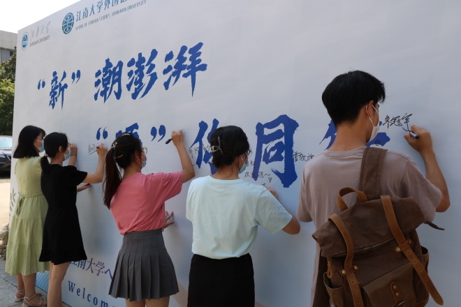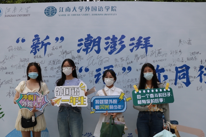 本次迎新的主题为:“新”潮澎湃,“语”你同行。迎新现场布置了新生签名墙,配设了温馨迎新手卡,安排员工会同学引导签名,帮助拍照留念。公司大厅同时开启四条快速报到通道及一条专门绿色通道,安排志愿者负责2022级新生报到的各个环节。此外,公司还为新生精心准备了外院专属迎新礼包,让新生感受到了初次见面的温暖与关爱。迎新现场的工作人员积极热情,耐心、细致地引导新生签到、收交材料、领取礼品。