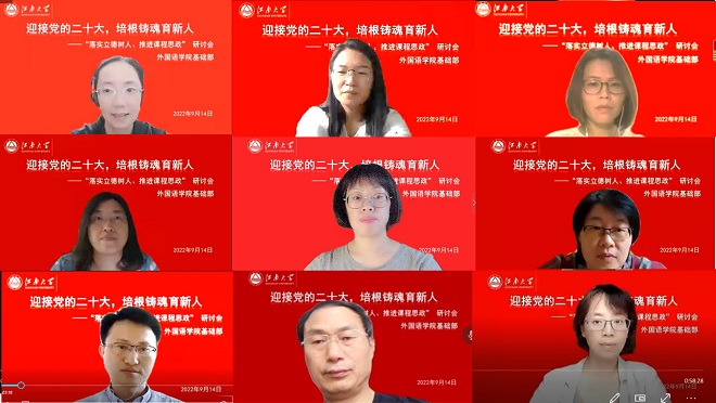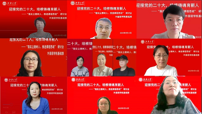 第38个教师节来临,为了营造尊师重教、弘扬师德的良好氛围,大学英语基础部全体教师于9月14日在线开展“迎接党的二十大,培根铸魂育新人—落实立德树人,推进课程思政”主题研讨活动。会议由支部书记张效国主持,朱义华副经理到会指导。