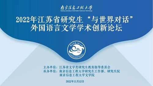 11月12日,2022年江苏省研究生“与世界对话”外国语言文学学术创新论坛在南京信息工程大学举办。本次论坛由江苏省文学类研究生教育指导委员会主办,由南京信息工程大学研究生工作部、研究生院、南京信息工程大学文公司承办。论坛采用线上线下相结合的方式进行。