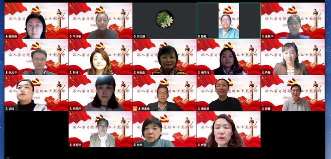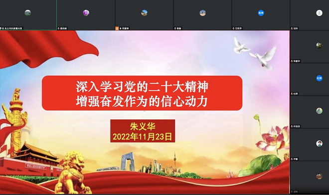 11月23日晚,拓展部党支部组织党员教师召开以“深入学习领会党的二十大精神”为主题的线上支部政治学习。会议由支部书记邢嘉锋老师主持,朱义华副经理莅临线上会议室并讲授了专题党课——“深入学习党的二十大精神,增强奋发作为的信心动力”。