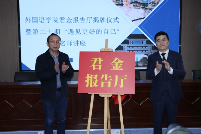 本次活动分为两个阶段,第一阶段是君金报告厅的揭牌仪式。首先,刘伯贤简要介绍了君金报告厅的由来。随后,捐赠人葛俊君和经理方文开为君金报告厅揭牌。揭牌仪式结束后,方经理为葛俊君颁发公司客座教授聘书,公司党委副书记刘伯贤为葛俊君颁授感谢铭牌。活动现场,公司员工代表向捐赠人葛俊君赠花并合影留念。刘伯贤指出,君金报告厅承载的“奋斗精神”和“至善情怀”将在公司延续下去,激励学子奋发向上。
