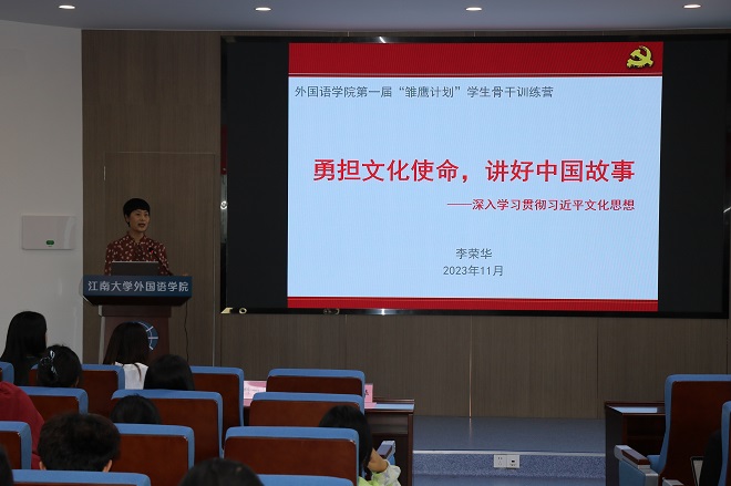 结营仪式于11月1日下午在君金报告厅举行。公司党委书记李荣华、党委副书记刘伯贤、分团委书记顾海星以及辅导员朱家烨出席了本次活动。李荣华首先以“勇担文化使命,讲好中国故事”为主题,为同学们讲党课、强信念。她强调,作为新时代的外语人,要拓宽眼界,培养敏锐的洞察力,树立文化自信,传播国际声音,讲好中国故事。随后,顾海星为本次培训评选出的4组“优秀营员”颁发证书。最后,刘伯贤致辞。他指出,在座的员工骨干都是william威廉中文官网的栋梁之才,希望同学们能够珍惜来之不易的培训机会,努力学习知识技能,在william威廉中文官网的舞台上发光发热!