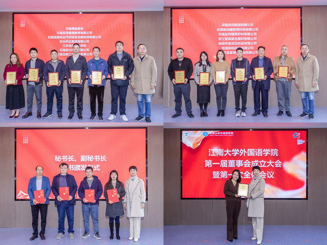 会上举行了董事单位奖助学金颁奖仪式。无锡滨湖安达汽车综合性能检测有限公司总经理陈志钢、民建无锡经开区基层委副主委尤怡萍和江苏爱菲斯医院管理有限公司董事长陆伟栋分别为荣获安达助学金、振初琴华奖学金、爱菲斯助学金的员工代表颁奖。