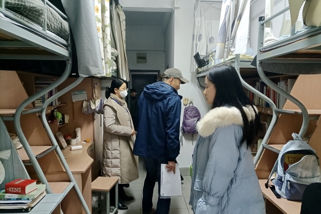公司辅导员带领员工会同学对公司本科生宿舍进行全面检查,在检查过程中,从用电安全到内务整理,逐一提醒并做好情况记录,检查结果在各年级进行公布。临近期末,辅导员老师提醒大家宿舍及时开窗通风,学习上做好复习迎考。