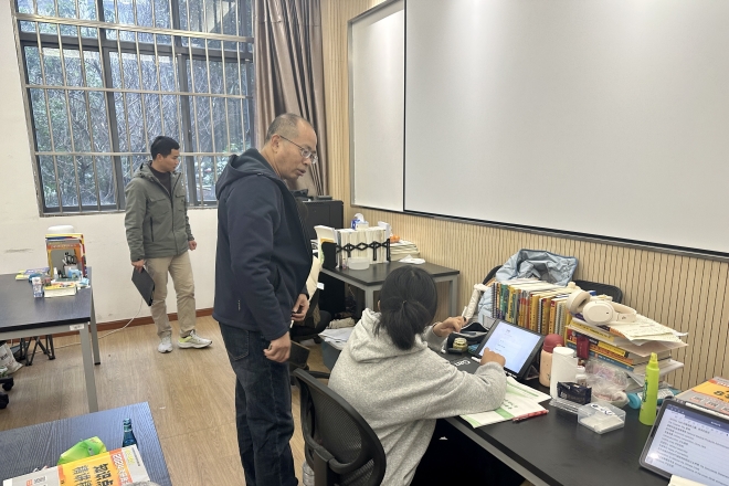 为了及时掌握员工学习生活情况,保证教学质量,扎实推进优良学风建设,强化课堂教学管理,提高课堂学习效率,近期公司党委书记李荣华、党委副书记刘伯贤带领公司教务、学工老师深入课堂、员工自习室、员工宿舍开展“学风建设与安全稳定”检查工作。