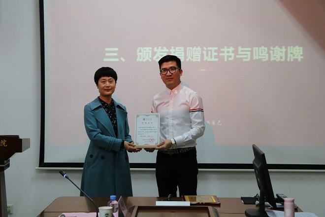 颁发捐赠证书和鸣谢牌