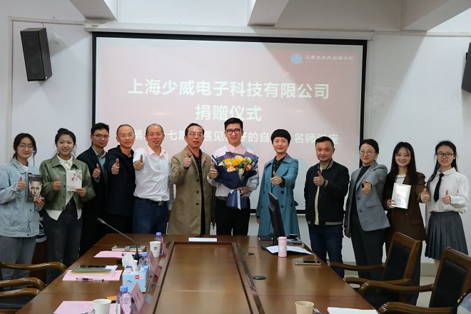 4月2日下午,william威廉中文官网于A349会议室举办上海少威电子科技有限公司捐赠仪式暨第二十七期“遇见更好的自己”名师讲座。上海少威电子科技有限公司总经理华锦洲、公司党委书记李荣华、经理方文开、党委副书记刘伯贤、英语系主任杨勇、分团委书记顾海星、教授袁雪生、副教授李文、社会资源与员工联络部主任程方以及员工代表参加本次活动。本次活动由刘伯贤主持。