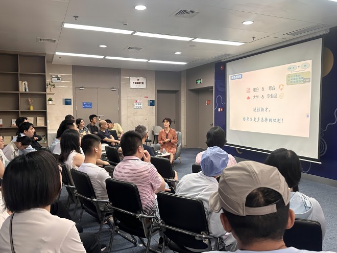 签约仪式完成后,进行了结对共建后的第一次活动——邀请校教务处副处长、招生办公室主任戴云为妇幼保健院的高考员工家长进行了高校招生政策解读与志愿填报指导讲座。讲座受到了考生和家长们的热烈欢迎和一致好评。