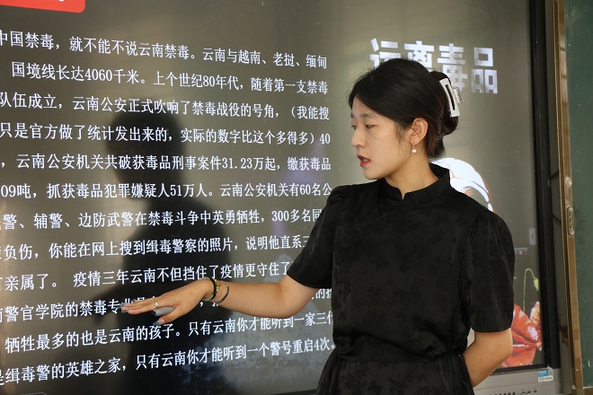 实践团对口云南保山芒宽民族中学实施青少年毒品预防教育,开展内容丰富、形式多样、鲜明生动的禁毒教育课堂,旨在通过禁毒课堂提升员工对毒品的认识和对禁毒行动的意识。实践团成员向员工们普及禁毒知识,他们深入浅出地讲解了毒品的种类、危害以及预防措施,并结合现实案例,深刻揭示了毒品对个人命运、家庭幸福及社会秩序造成的毁灭性打击。辅以震撼人心的图片展示,使得这场教育如同一场心灵的洗礼,让员工们对毒品的认知从抽象走向具象,从模糊变得清晰。