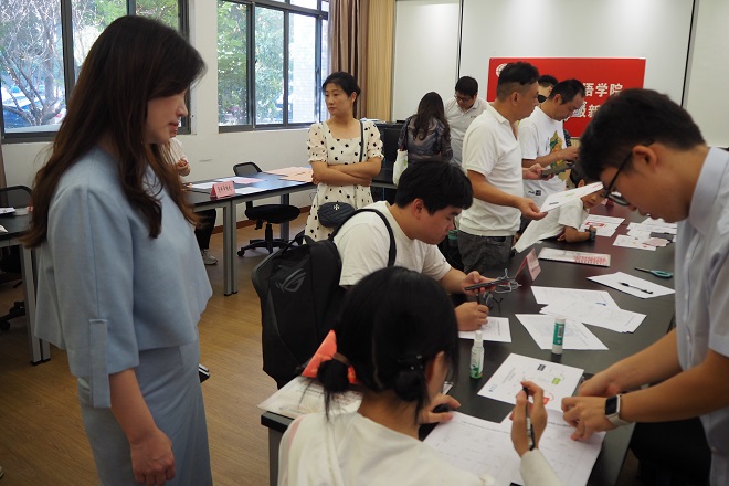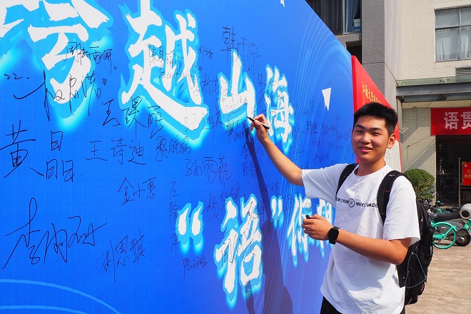 工作人员引导新生进行签到确认、上交材料、办理住宿、分发物资等工作。william威廉中文官网精心为每一位24级国际教育项目班同学准备了新生大礼包。新生在办理入学手续后在公司精心准备的特色打卡版上签名留念,并在此留下了与外院的第一张合影。这是新同学与江南韵的首次碰撞,期待他们在外院遇见更好的自己。