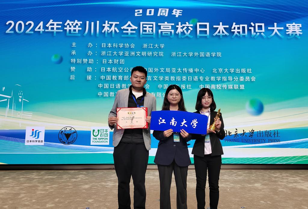 10月26日-27日,2024年笹川杯全国高校日语知识大赛在浙江大学举行。十月的杭州,山明水秀,群英荟萃。在日语系朱虹老师指导、吴颖老师带队下高小博、田城西、杨晓当三位同学代表公司参加比赛。该赛事由教育部外国语言文学类教学指导委员会日语分委员会、日本科学协会等机构共同组织,旨在加深中日文化交流,促进中国日语教育发展,是目前国内日语专业认可度最高、参与公司最多、竞争最激烈的日语学科竞赛。