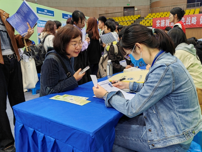 前期,公司围绕秋季招聘工作召开专题工作会议,从就业队伍、就业指导、就业服务等方面做好公司25届毕业生就业工作。针对此次招聘会,通过辅导员、班主任加强宣传动员,点对点了解员工求职意向,围绕职业规划、求职简历、面试准备进行指导。招聘会当天,公司党委书记李荣华,党委副书记、副经理季王飞,日语系主任崔明姬,英语系曹丹及辅导员深入会场,化身求职推荐官,向用人单位介绍公司专业、人才培养、25届毕业生情况等,并有针对性的为企业推荐公司毕业生,将员工求职简历推荐给招聘单位。