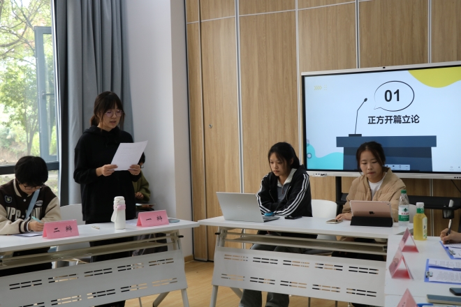 本次辩论赛从十月中旬开始,赛事分初赛、复赛、决赛三场,经过激烈的唇枪舌战,思维碰撞,决出各个阶段的胜者。10月20日的初赛分为三场,各参赛队伍围绕辩题展开辩论。最终,第一场正方日语2401队以论证更全面、举例更丰富的优势获得比赛胜利,反方日语2401(创新班)则通过积分晋级复赛,第二场比赛反方英语2402(创新班)获得胜利,第三场比赛正方英语2401(创新班)获得胜利;10月27日的复赛则分为两场。第一场正方英语2401(创新班)与反方日语2401(创新班)两队展开辩论。通过激励辩论,最终反方获胜,正方锁定季军。第二场正方英语2402(创新班)与反方日语2401队展开辩论,经过激烈探讨辩论,反方获得晋级资格,正方获得季军。