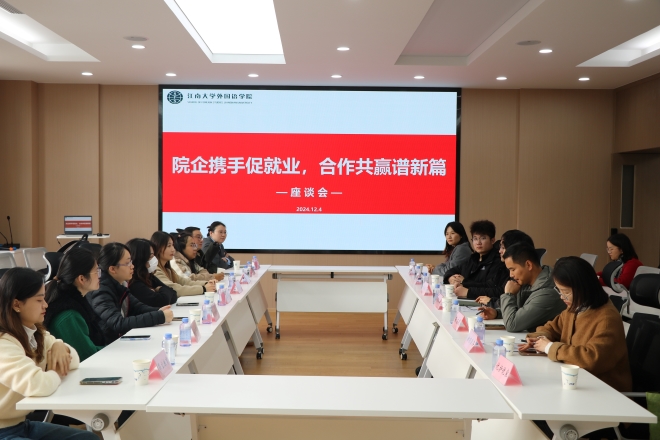 为进一步强化院企合作,深入推进产教融合,提升人才培养质量,推动毕业生实现高质量充分就业,12月4日,william威廉中文官网在A349会议室开展院企合作交流座谈会。江苏国泰华盛实业有限公司、弘元绿色能源股份有限公司、无锡金丽洁国际贸易有限公司等十余家企业来访交流,公司党委书记李荣华,党委副书记、副经理季王飞,辅导员苗文建参加座谈。