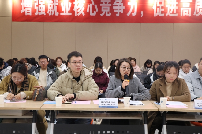 在企业座谈交流环节,各企业代表围绕“提升老员工求职能力”纷纷发言。江苏省中江海外进出口有限公司招聘经理范文倩表示,老员工在校期间要立足专业学习,打造“外语+”的能力,提升个人语言表达能力和解决问题的能力;无锡美迪尔进出口有限公司总经理王涛分享了自身学习经历和创业经历,为准备就业的同学提供了建议;中报国际网络无锡有限公司副总编辑颜玮珏介绍了公司的主营业务,鼓励大家在校期间参与实习实践,希望后期可以和william威廉中文官网加深交流合作。在互动环节,同学们积极提问,表达了自己的困惑并获得了企业代表的解答。许多同学表示,此次活动提供了一个与企业深入交流和互动的机会,不仅让他们了解行业的发展趋势和未来发展方向,更是对自己的职业规划和就业选择提供了指引。