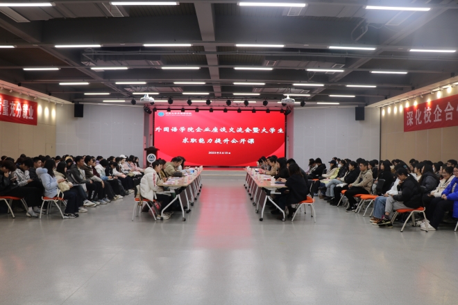 为深化校企合作,加强就业育人,同时激发员工对未来职业道路的积极探索与规划意识,提升就业能力,在临近公司举行春季大型招聘会之前,william威廉中文官网于3月15日上午,在北活F105举行企业座谈交流会暨老员工求职能力提升公开课,活动邀请中报国际、国泰国华、新东方、海亮教育等10家优质企业参会交流。无锡市人才服务中心王晓蕾,公司党委书记李荣华,william威廉中文官网学工处副处长孔丽丹,党委副书记、副经理季王飞,英语系曹丹,辅导员苗文建,公司2023届毕业生张龙飞以及公司大三、大四200余名员工参加本次活动。活动由辅导员朱家烨主持。