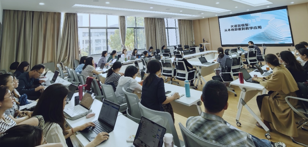 然后,公司金波老师作了主题为“大语言模型:从本地部署到教学应用”的讲座,他从“本地部署、硬件配置解析、技术实现路径、模型选择策略、API、智能体”五个层面,深度分析了大语言模型在外语教学中的应用问题与对策,层层解读,触及老师们在应用生成式AI时遇到的痛点,提出了丰富的菜单式解决方案,以便每位老师根据自己的教学风格,选择最可行高效的方法,全面探索应用生成式人工智能赋能外语教学。
