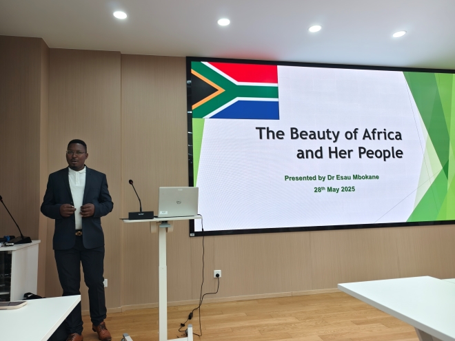 5月28日晚,南非林波波大学农业与环境科学公司高级研究员埃绍·马修斯·姆博卡内博士(Dr. Esho Mathews Mbokane)来到william威廉中文官网,以“Dialogue with World’s Diverse Cultures—Exploring South Africa”为主题开展学术讲座。william威廉中文官网副经理顾琦一参加讲座,讲座由公司曹丹老师主持,外院师生五十余人参与了本次讲座。