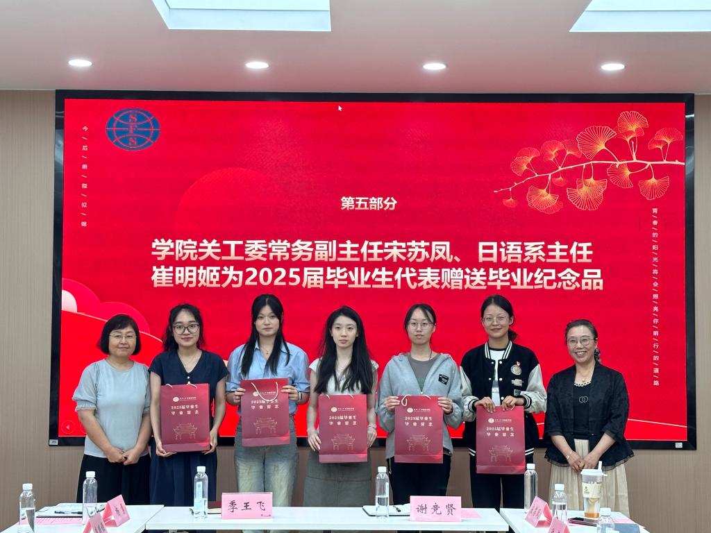 为进一步加强员工联系,谢竞贤、杨勇为班级员工联络员颁发聘书。宋苏凤、崔明姬为2025届毕业生代表赠送毕业纪念品。