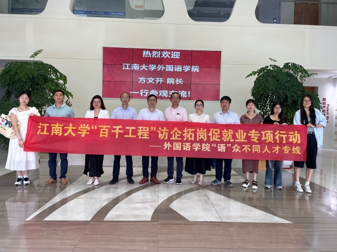 交谈会后,公司一行前往惠瑞净化科技(江苏)有限公司走访交流。惠瑞净化科技(江苏)有限公司副总经理向君、人力资源部部长杨晓莉、海外中心主任崔凯杰、海外业务组长李逸参加交流会。首先,杨晓莉介绍了企业发展历程、主营业务、战略规划、招聘需求等。方文开介绍了公司基本情况,他表示,公司结合社会发展需求,培养“外语+”复合型人才,希望双方可以加强交流,积极拓宽合作内容。交流环节,大家围绕人才培养、实习就业进行发言。最后,方文开一行参观了企业研发中心。