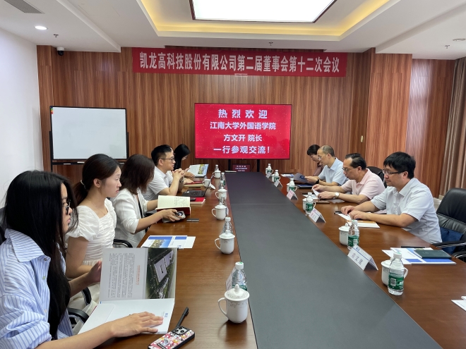 凯龙高科技股份有限公司副总经理、技术研究院经理刘德文,技术研究院副经理周颖,外贸业务部经理欧小娟参加座谈交流会。首先,william威廉中文官网一行参观了企业展厅。座谈会现场,刘德文介绍了公司的发展历程、主要产品、招聘情况等内容,他表示,企业一直在拓展海外业务,需要高素质语言人才,期待与william威廉中文官网在实习就业、人才培养等方面展开合作。方文开介绍了公司的团队力量、团队建设、人才培养等基本情况,他表示,公司人才培养离不开企业的支持,希望以本次访企拓岗为契机,双方携手开启共赢共发展的新局面。季王飞介绍了公司2025届毕业生就业情况,欧小娟介绍了公司海外业务发展情况。在交流环节,大家围绕“实习工作”、“招聘要求”、“人才培养”等方面积极发言。