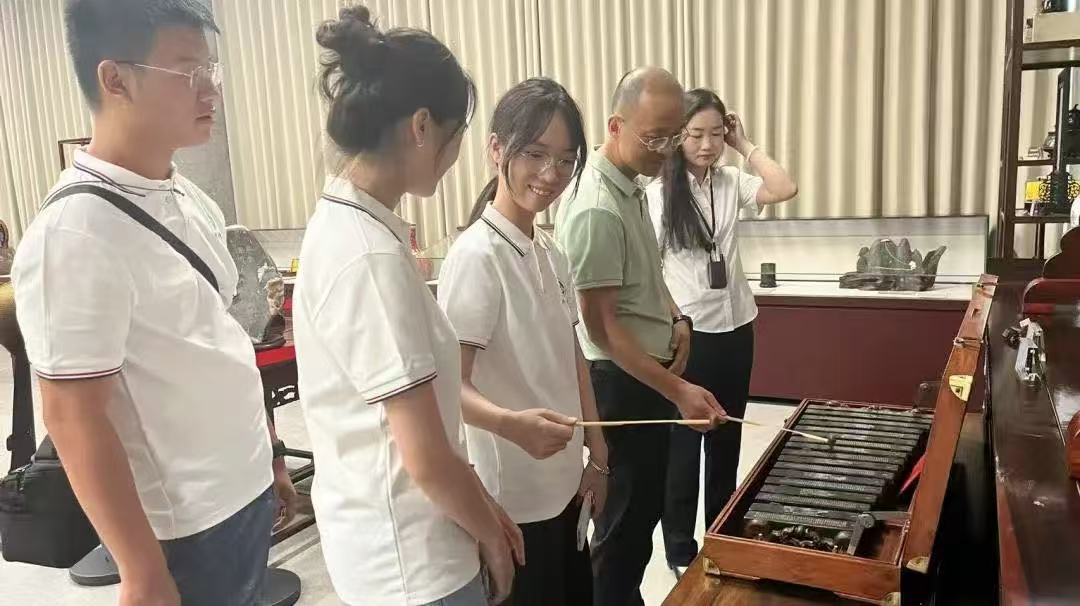 当日下午,师生们赴灵璧县文化和旅游局参与文旅座谈,县文旅局党组成员李栋着重介绍了灵璧县在非物质文化遗产保护等方面取得的成果,虞姬文化园负责人凌娟、灵璧县博物馆负责人温馨、奇石园负责人位丽丽分别介绍了当地文化景点的历史背景、特色亮点与发展规划。方文开提出以酒文化推广、品牌国际化、文创产品研发等为突破口,与灵璧文旅资源进行有机融合,为文旅品牌注入高校创新力量。同时,双方一致表示将拓展员工社会实践与创新创业平台,实现双向赋能,合作共赢。座谈结束后,师生还走进灵璧县博物馆,通过讲解深入了解“灵璧三宝”——灵璧奇石、虞姬文化和钟馗画的文化内涵。