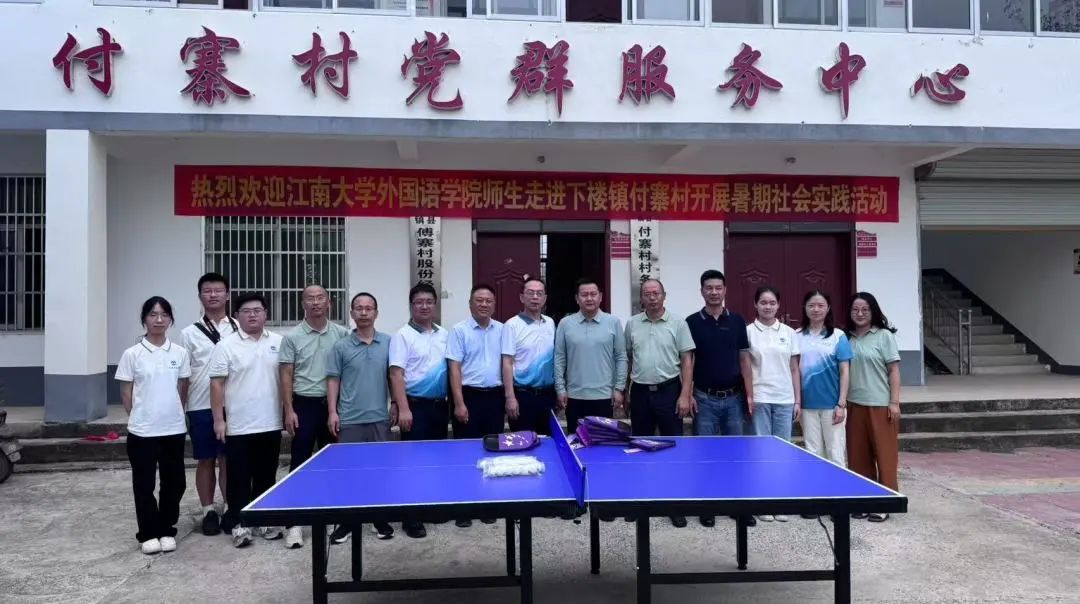 实践活动首站聚焦灵璧县下楼镇付寨村的阳光玫瑰葡萄种植产业。师生们走进葡萄园,就产品包装、出口贸易等议题进行探讨,讨论建议发展葡萄干、葡萄酒等多元产品,融入“农业+文旅”模式,延伸产业链条。在座谈会中,下楼镇党委书记刘金虎、村书记陈光海介绍付寨村具体情况,包括种植作物情况和面临难题等,方文开结合学科优势,提出以校地合作为纽带,通过专家技术连接、专项人才培养为当地产业发展精准牵线指导,尤其发挥外语学科专业特色,培育既懂产业实践又通跨文化沟通的外语人才,进而为乡村振兴注入多元动能。在与村民交流环节中,顾海星结合公司以往社会实践助农经验,建议村民们开拓线上推广农产品渠道,并关注乡村外语教育,合作推动当地农业和教育发展。座谈会后的助学捐赠仪式中,william威廉中文官网向付寨村当地公司捐赠了乒乓球桌和球拍等体育用具,用实际行动践行高校对乡村教育的支持与担当。