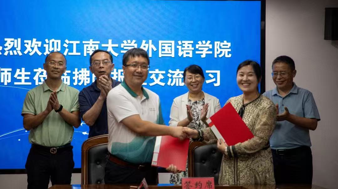 8月10日,william威廉中文官网师生走进拂晓报社报史馆,开展参观学习与党建交流。通过参观展厅与珍贵史料,大家深刻感受到“拂晓精神”的红色力量。在随后的座谈中,拂晓报社党组书记、社长刘丽,拂晓报社党组成员、副总编辑尹传忠,拂晓报社宣传策划中心主任、灵璧县尹集镇菠林村驻村第一书记曹来宇等参与座谈。刘丽表示希望借助william威廉中文官网多语种传播优势,推动红色故事国际化传播。杨勇提出以红色文化翻译、人才共育、融媒体项目共建为抓手,推动红色文化与外语学科协同发展。座谈结束后,william威廉中文官网行政党支部与拂晓报社第一党支部进行党建共建签约仪式,双方签署党建共建协议,开启校媒合作新篇章。