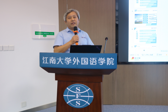 正式报告阶段,赵国飞为2025级新生带来题为《全面国际接轨中英语的重要性》的分享。他结合当前国际化发展趋势,深入探讨了英语在跨文化沟通、专业发展与国家战略中的关键作用,进一步激发了同学们的专业热情与使命担当。他结合自身丰富的工作经历和国际化发展趋势,深入浅出地探讨了英语在跨文化沟通中的桥梁作用,以及在专业发展领域如何助力个人突破瓶颈、实现职业晋升。在谈到国家战略层面时,他强调了英语对于推动我国科技、文化等各方面与国际接轨的重要意义。