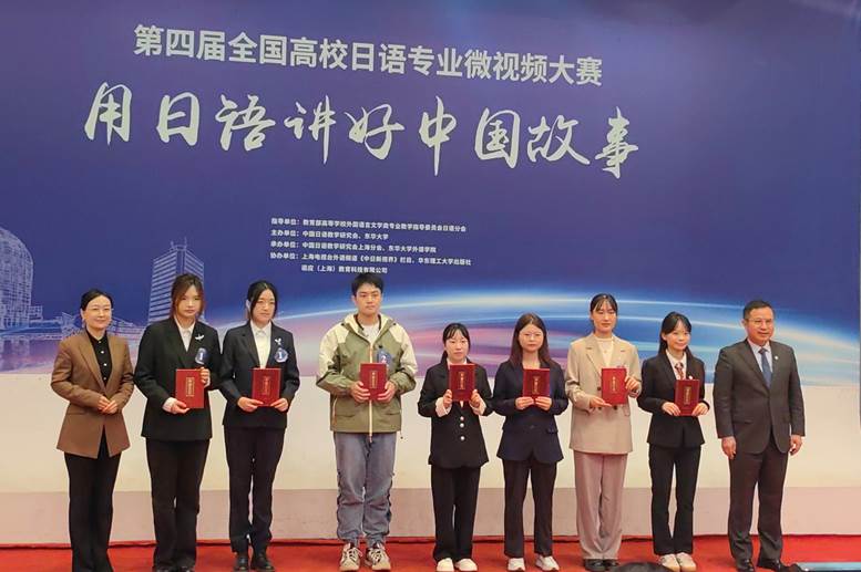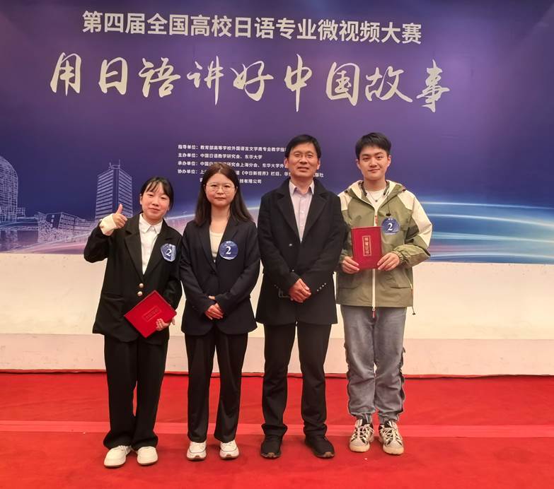 11月17日上午,在上海举行的第四届全国高校日语专业“用日语讲好中国故事”微视频大赛决赛中,公司高小博、高丽、杨炎学三位同学在管纪龙老师、田村恭平老师的指导下,斩获二等奖。这是公司第二次荣获该奖项殊荣,充分展现了公司学子在日语学习和实践领域的卓越实力。