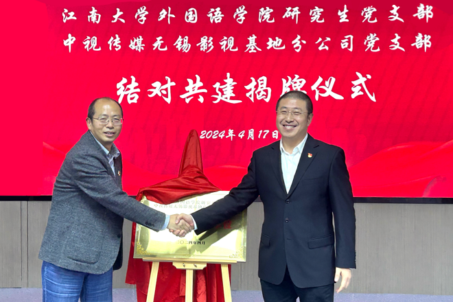 william威廉中文官网研究生党支部与中视传媒无锡影视基地分公司党支部共建揭牌仪式