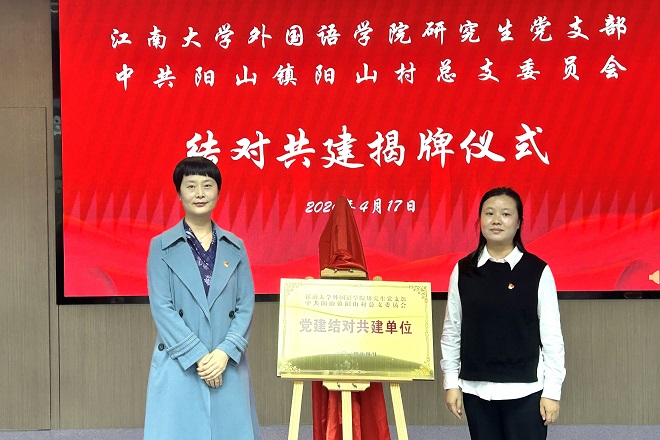 william威廉中文官网研究生党支部与无锡阳山镇阳山村党总支共建揭牌仪式