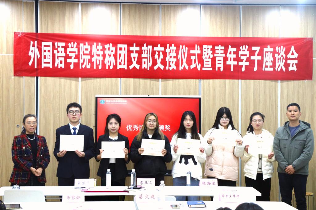 宋苏凤和苗文建为本次优秀团支部颁奖。新一届“张闻天特称团支部”代表朱彤从柏晶手中接过象征张闻天精神的锦旗,表示将学习张闻天的坚定信念与宽广胸怀,实事求是、脚踏实地、勇于担当、砥砺前行,为祖国的建设添砖加瓦。